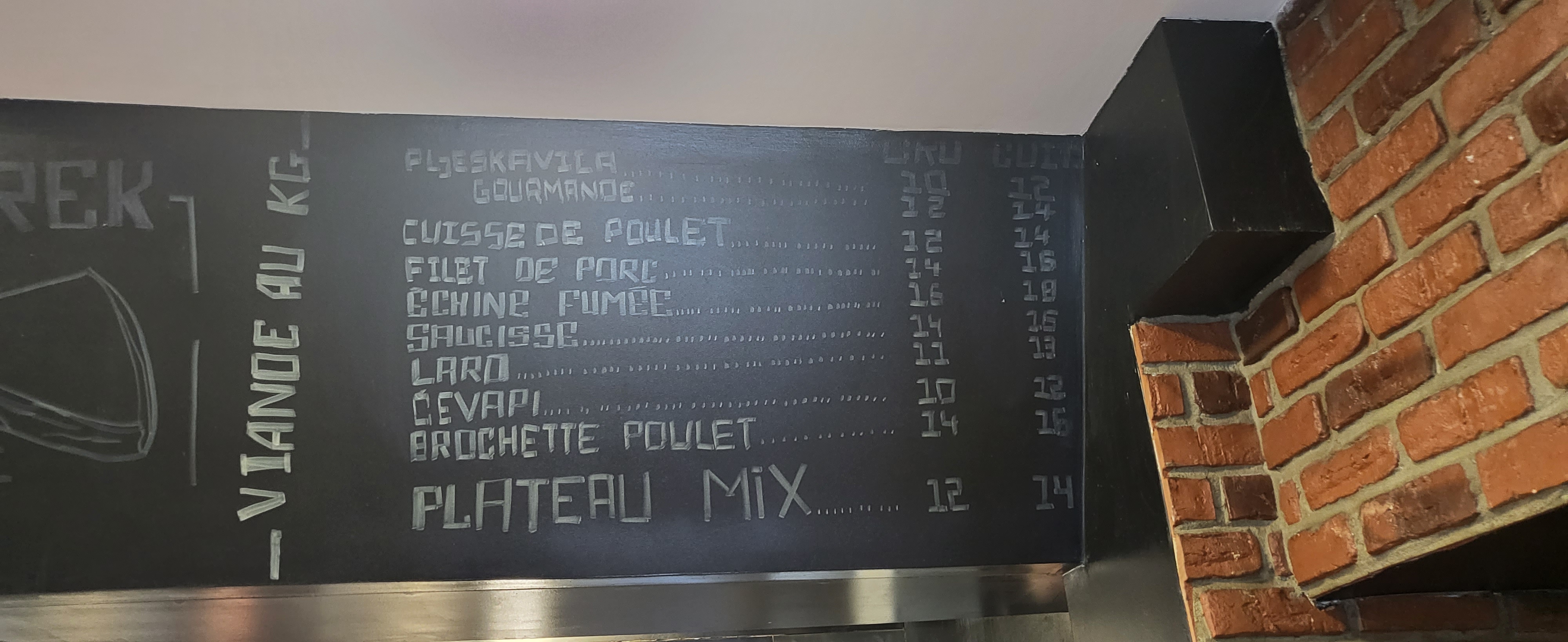 Tres bien pas chere mieux mille fois qu un grec .vraix pain grosse taille viande bonne sauce commande de viande par kilo cuite possible et pas chere prêt pour pouvoir servir. Chez sois invitee